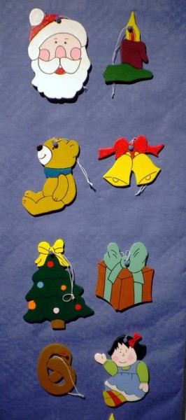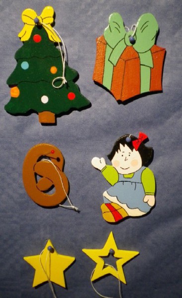 Der Baumbehang wird in eingeschweißter Folie geliefert. Die einzelnen Figuren sind beidseitig bemalt und mit Klarlack (seidenmatt) überpinselt, so dass sie feucht abgewischt werden können. Der Faden zum Aufhängen ist bereits an den Figuren befestigt.