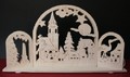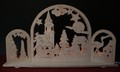 Grundplatte angebracht und bilden mit der Mitte einen leichten Bogen. Der Lichterbogen wird mit Beleuchtung (10er Mini-Lichterkette) und Netzstecker sowie zusätzlich 2 Ersatzleuchten geliefert.